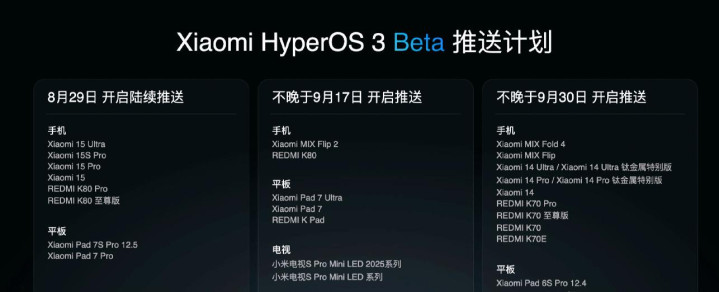 这波节奏也给了答案。首批推送覆盖六款手机+两款平板,今天已经开闸;第二批计划“不晚于 9 月 17 日”,第三批“不晚于 9 月 30 日”。