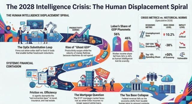 这并非危言耸听,也不是科幻作品中的天马行空,而是近期一份直接引发华尔街恐慌、导致美股软件板块集体暴跌的硬核报告——《2028全球智能危机》所发出的全人类死亡预警。
